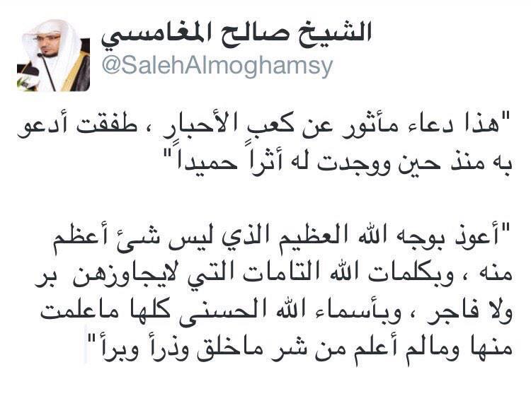 حمدان سالم الحربي V Twitter اعوذبوجه الله العظيم وسلطانه القديم الذي ليس شئ اعظم منه وبكلمات الله التامة التي لايجاوزهن بر ولا فاجر من شر ماخلق Https T Co Ax0u3irw2q