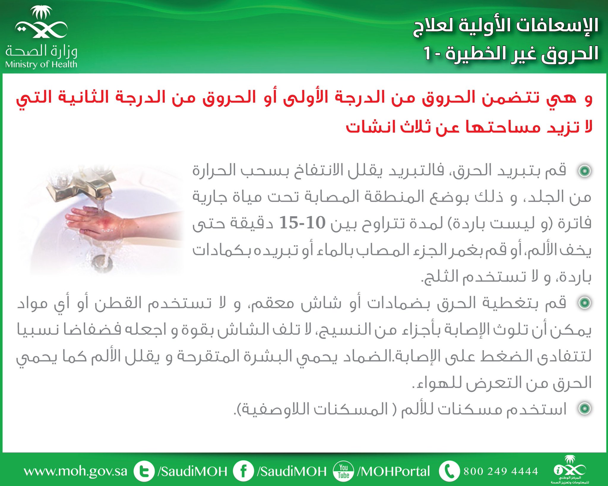 و ز ا ر ة ا لـ صـ حـ ة السعودية Ar Twitter الإسعافات الأولية لعلاج الحروق الغير خطرة 1 توعيه صحة وقاية علاج إسعافات أولية