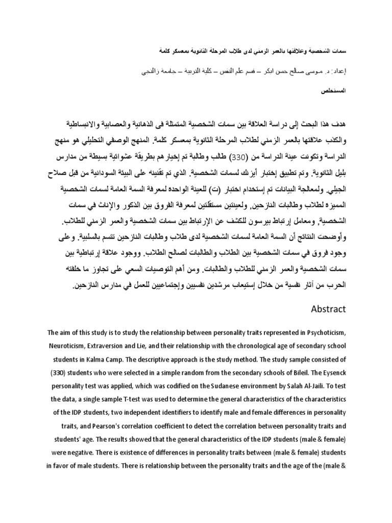سمات الشخصية وعلاقتها بالعمر الزمني لدى طلاب المرحلة الثانوية بمعسكر كلمة Docx