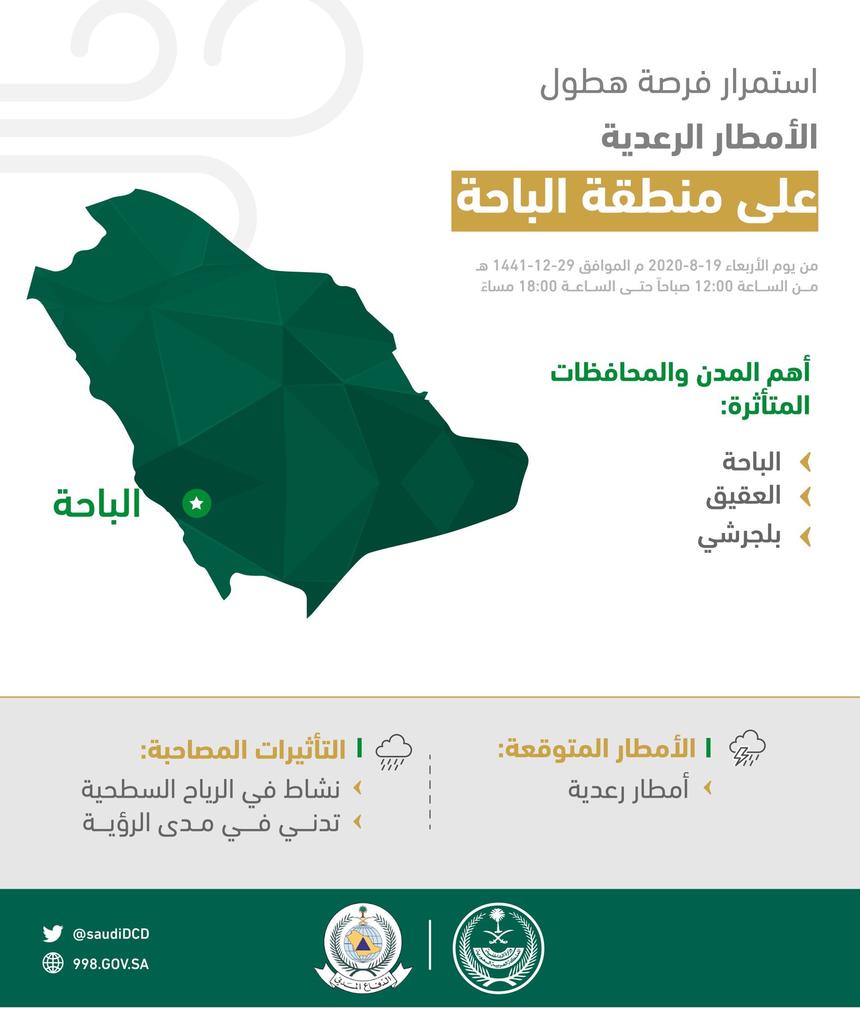 صحيفة عين الأخبار استمرار فرصة هطول الأمطار الرعدية على منطقة الباحة تشمل الباحة العقيق بلجرشي حتى 6 م