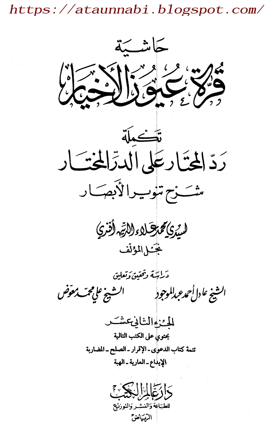 Radd Ul Muhtaar Aala Durre Mukhtaar Sharah Tanveer Ul Absaar رد المختار علی الدرالمختار شرح تنویر الابصار مکمل By امام محمد امین الشھیر بابن عابدین Ataunnabi Islamic Pdf Books