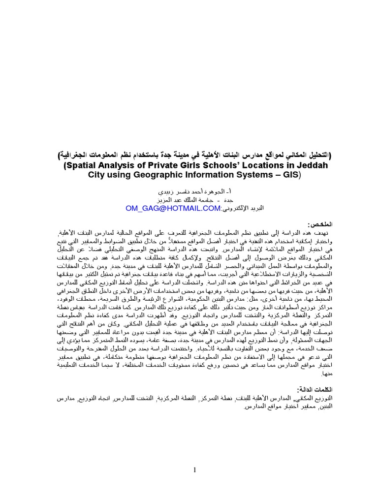التحليل المكاني لمواقع مدارس البنات الأهلية في مدينة جدة باستخدام نظم المعلومات الجغرافية