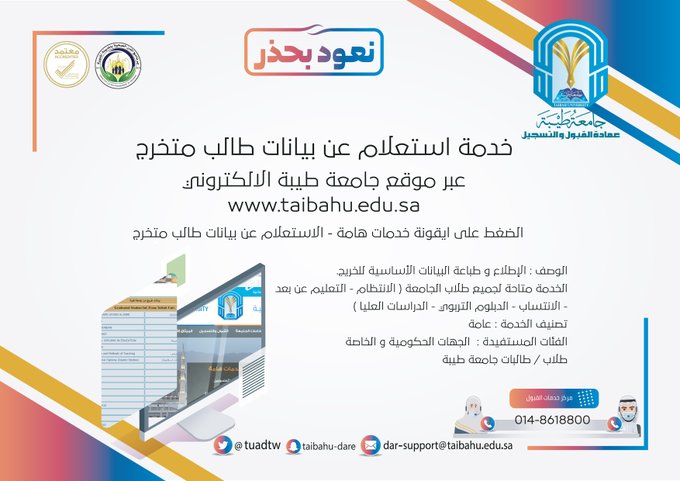 جامعة طيبة Taibah U On Twitter عمادة القبول والتسجيل بـ جامعة طيبة تعلن عن إتاحة نظام المعاملات الإلكترونية الخاص بتسكين طلبة المسار العلمي الموحد Https T Co Eqg36xultq Tuadtw Https T Co 3baqicjsyt