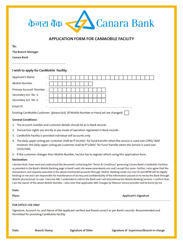 Canara Bank Netbanking Application Form Online Banking Financial Transaction