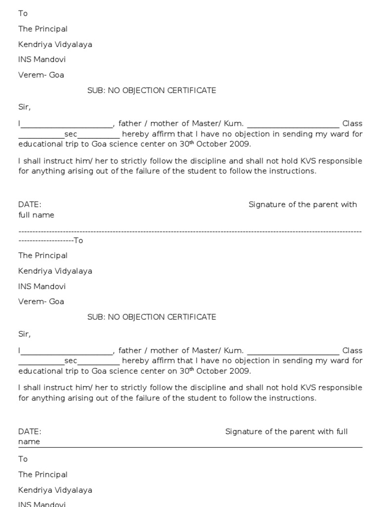 No Objection Letter Sample For Visa Child Writing Degree Resume