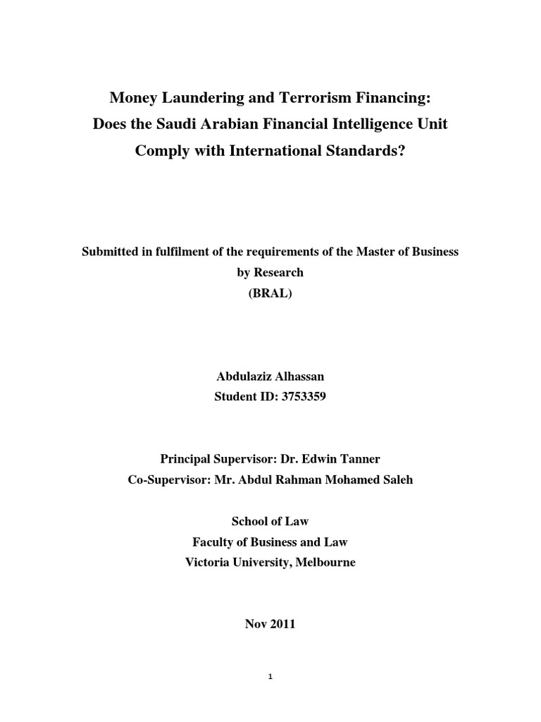Money Laundering And Terrorism Financing Does The Saudi Arabian Financial Intelligence Unit Comply With International Standards Financial Action Task Force On Money Laundering Money Laundering